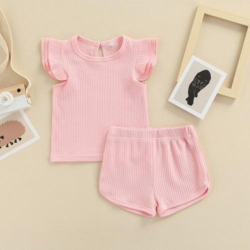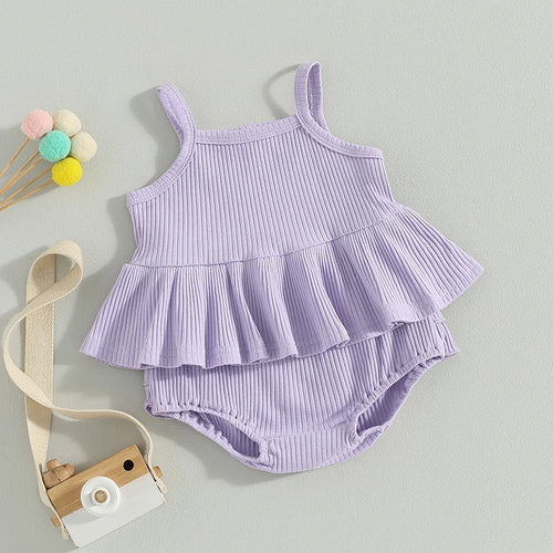 Ribbed Ruffle Heart Print Romper & Headwrap set