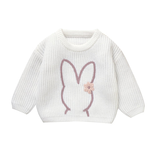 Embroidery Bunny Daisy Knit Pullover